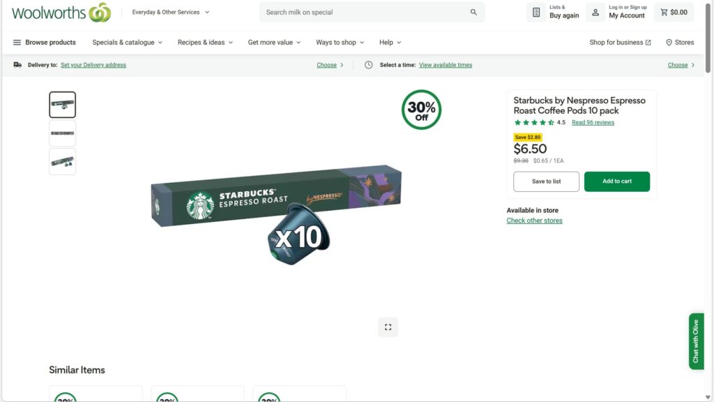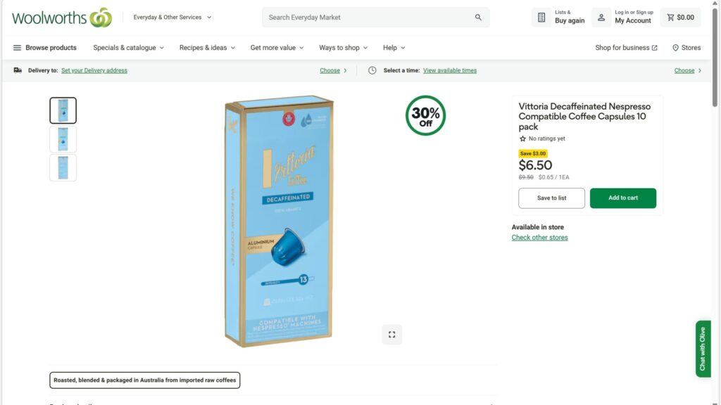 さすがコーヒー大国オーストラリア、スーパーでは多くの種類が売られておりセールを利用すると約30円/杯まで下がります。