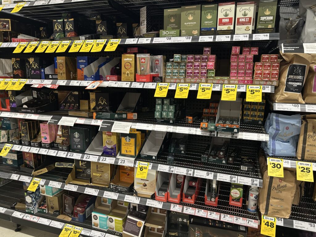また、オーストラリアでは、ネスプレッソがかなり普及していて、日本より多くの種類のカプセルがスーパーで売られています。