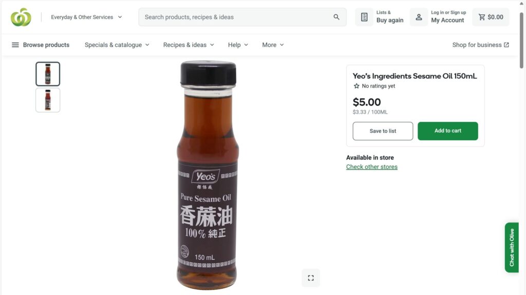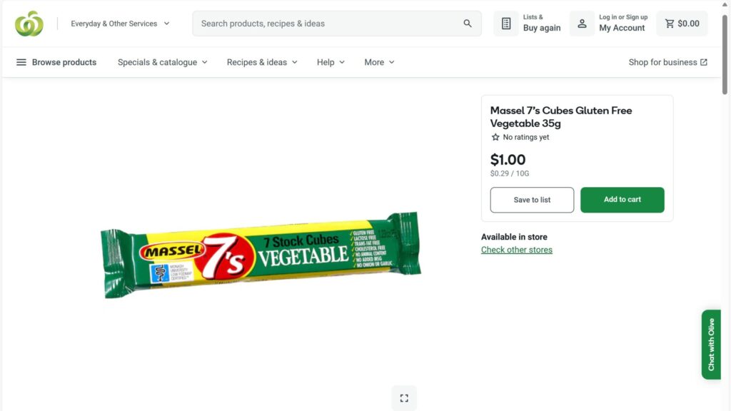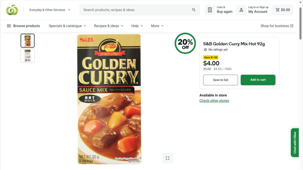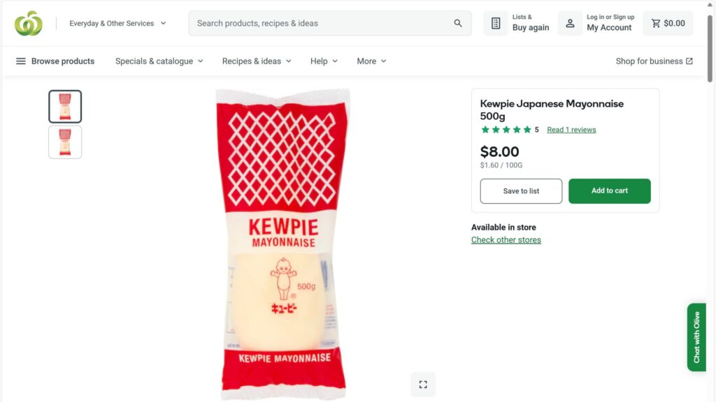 Woolworth(オーストラリアのスーパー)の公式サイトで商品名を検索してみましょう。