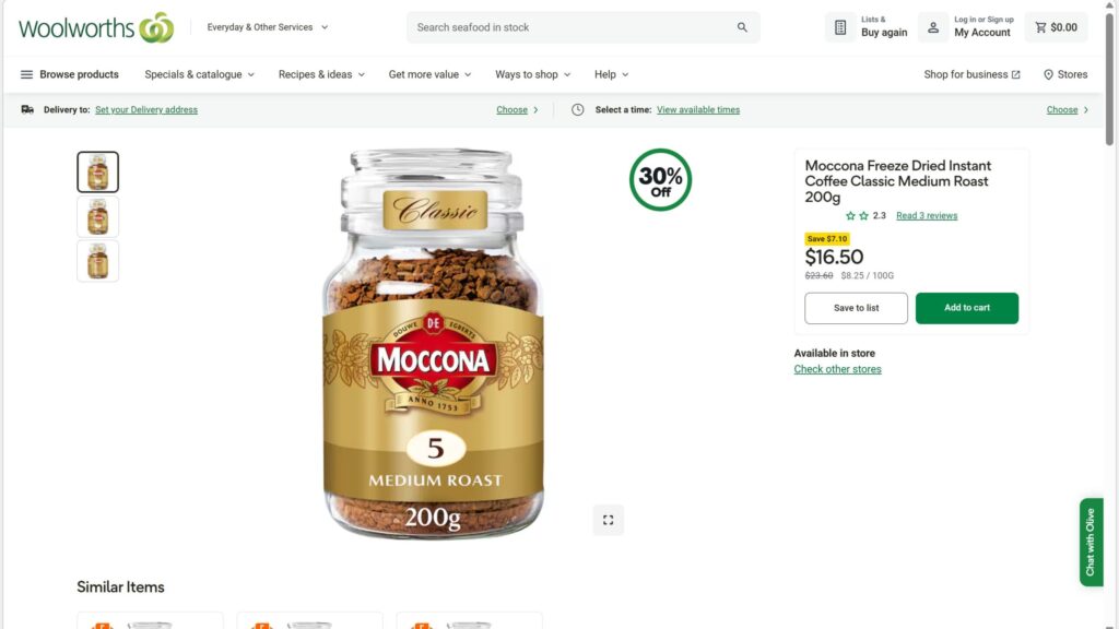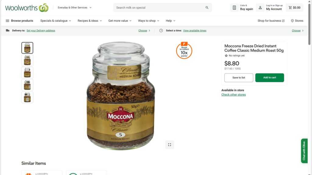 オーストラリアのスーパーでインスタントコーヒーを探しているなら、