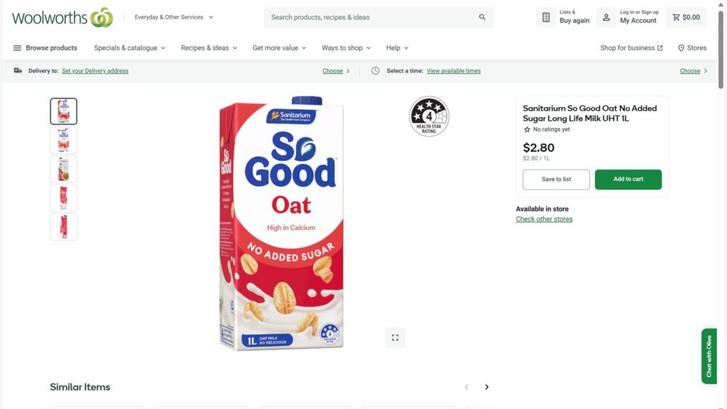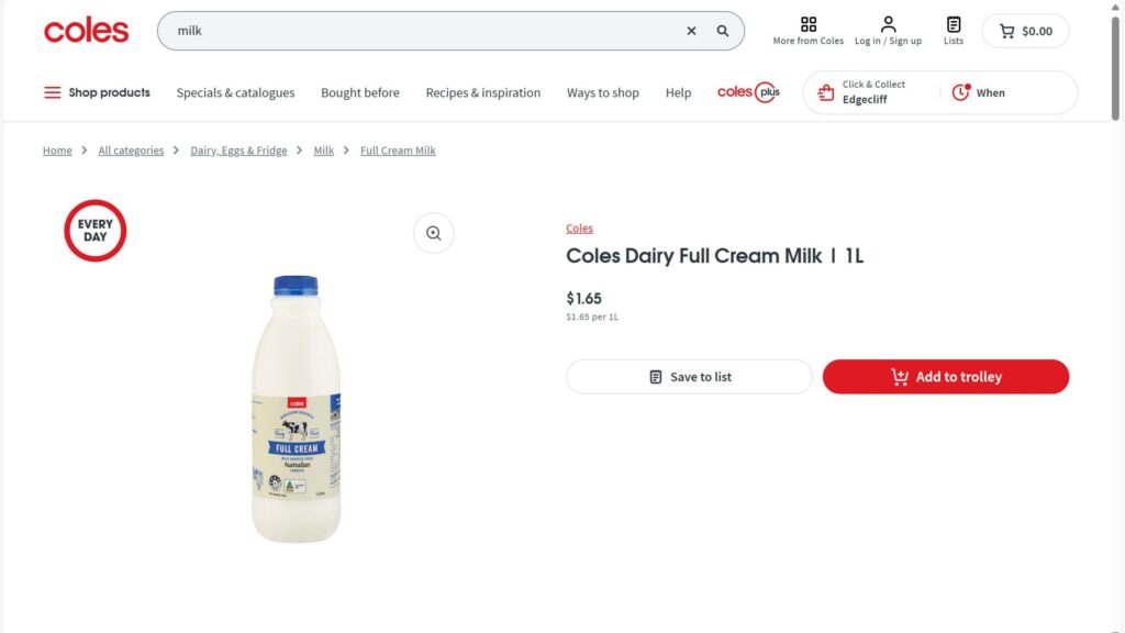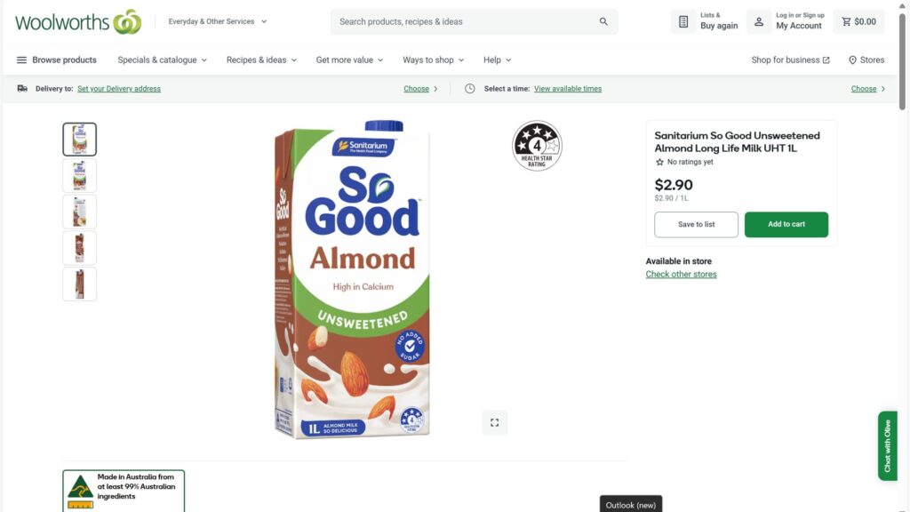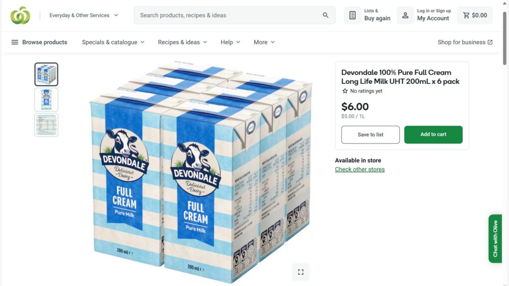 ちなみに1Lは、Woolworthsは紙パック、Colesはプラボトルタイプ。